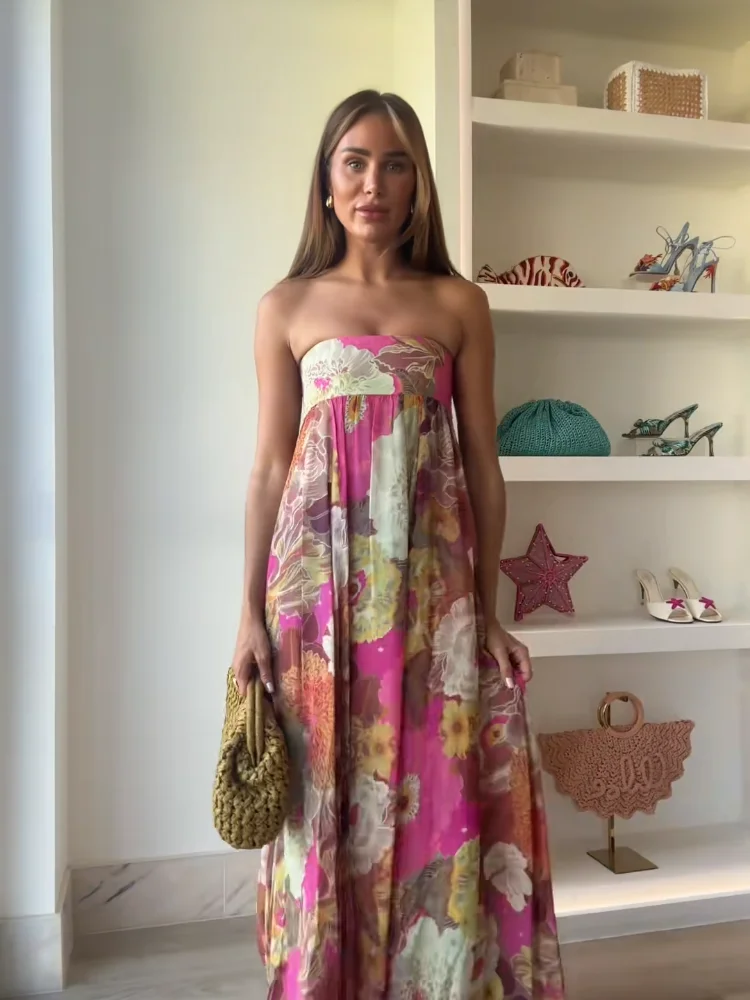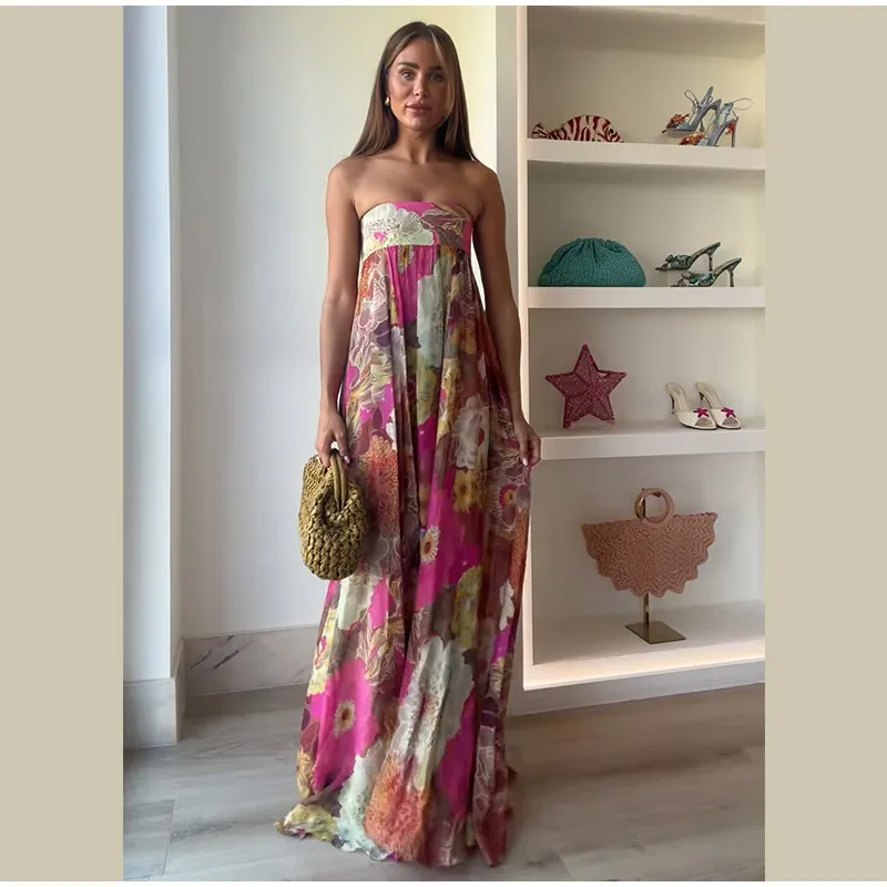 - Model Number: Chic Floral Print Pleated Long Dress